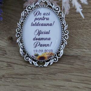Se personalizeaza doar cu numele,anul, sau urare scurta langa ace, in limita spatiului.